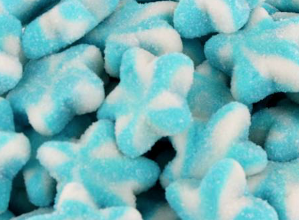 Ingrédients : sirop de glucose, sucre, eau, gélifiant : gélatine de boeuf halal, amidon modifié de pomme de terre, acidifiants E330 E270 E296, agent d’enrobage (graisse végétale non hydrogénée), arômes, colorants E171 E150d E100 E133 E129.