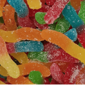 Ingrédients : Sucre, sirop de glucose, amidon de blé, eau, amidon de maïs modifié, acidifiants : E260, E270, E296 amidon de pomme de terre modifié, concentré de jus de carotte noire.